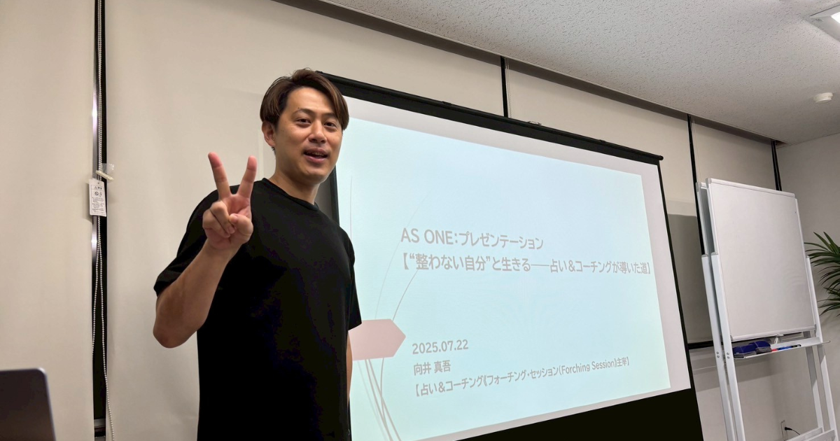 今回のプレゼンテーションは、向井真吾さんの占い×コーチングから生まれた《フォーチング・セッション》について。